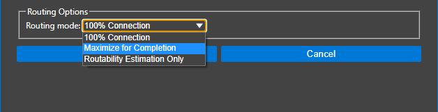 - Maximize Completing: Allow unsuccessful routes or routes generating DRCs to remain unrouted
